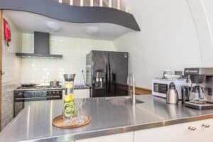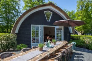 Vakantiestekkie Riethof biedt landelijke luxe middenin een bosrijke omgeving. Je wordt bij binnenkomst aangenaam verrast door de grote tafels en het unieke model van de accommodatie.